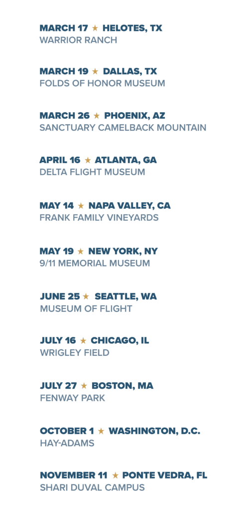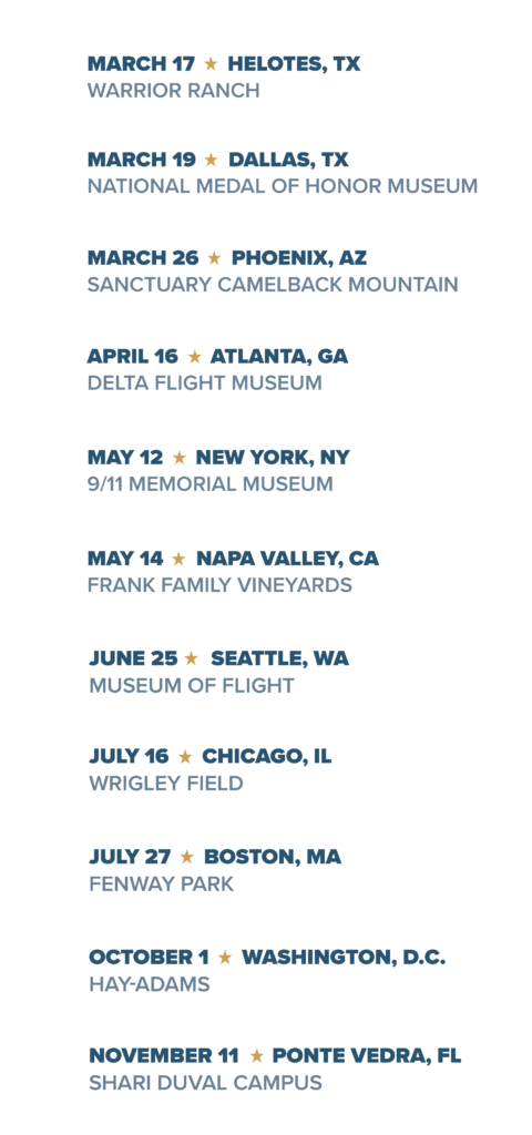 These special evenings will commemorate the countless lives transformed — the Warriors whose hope has been restored thanks to their lifesaving Service Dogs, the community who made it all possible, and our continued commitment to the next generation of heroes. Each event will feature inspiring Warrior testimonials, special guest speakers, dinner with an open bar, and more ways to support our life-saving mission.