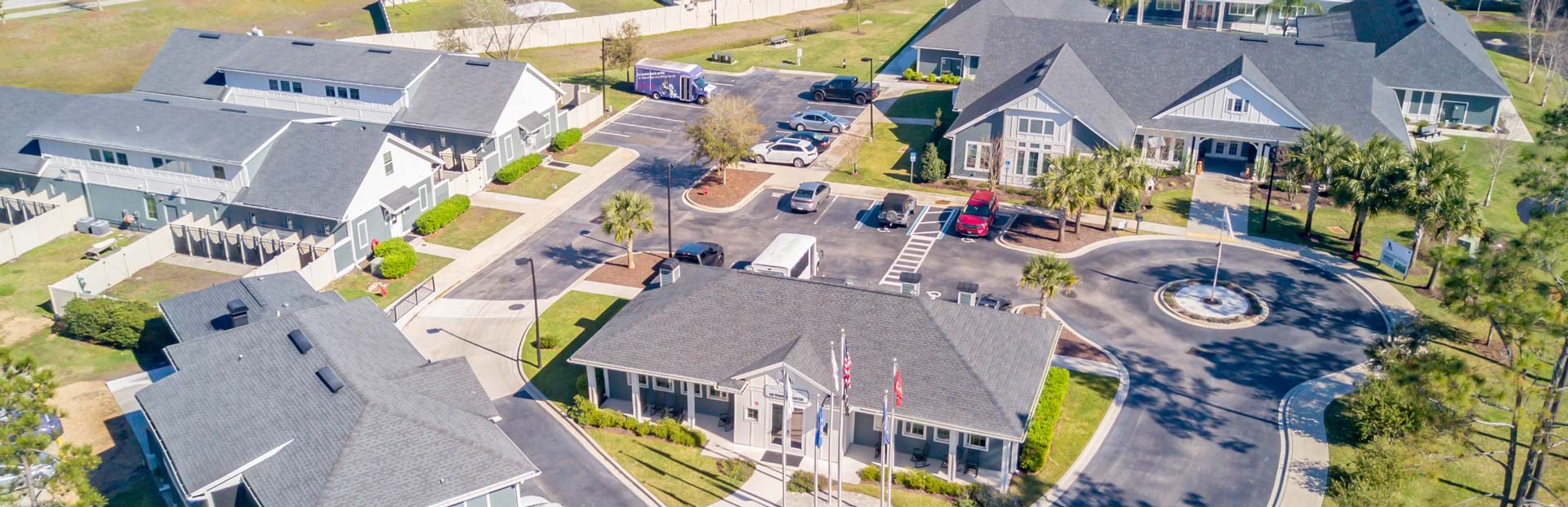 This is the primary facility for Warriors to train and bond with their new Service Dogs. Warrior amenities include suites with individual bedrooms and bathrooms, a full kitchen, dining hall, gym, and Warrior Clubhouse.
